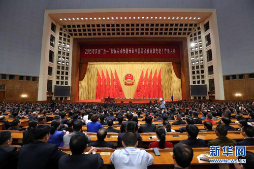 在慶祝“五一”國際勞動節暨表彰全國勞動模范