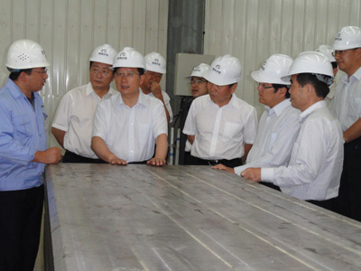 在青海聚能電力有限公司,強書記一行換上凈化服,進入到寬敞、明亮的車間,沿著現代化的流水線作業生產線,仔細察看了100MW多晶硅太陽能電池片清洗制絨、擴散、刻蝕、PE、絲印、燒結、分類檢測等工序流程,詳細詢問和了解設備性能、工藝特性、產品參數、人員配備及產能規模等情況。青海水電集團和聚能電力負責同志現場匯報了該公司目前面臨的困難和下一步發展目標,強書記指出,太陽能電池產業在我省剛剛起步,受市場波動影響較大,但企業要看到危機中存在的機遇,努力在技術革新、產品質量上尋求突破并搶占先機,待市場好轉后力爭有大的發展;要加大光伏產業資源的整合和配套,不斷擴展完善產業鏈條,切實增強企業抵御市場風險的能力。他叮囑隨行的省政府領導,要在政策、資金和光伏電站資源配置等方面給予企業支持和幫助。