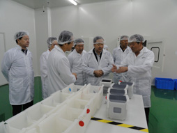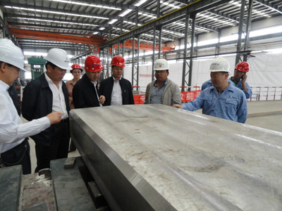 毛占彪副主任一行首先來到青海聚能電力有限公司和青海聚能鈦業有限公司,進入到生產車間和廠區,詳細察看了正在運行的一期年產50兆瓦太陽能電池片生產線及一期年產3000噸鈦及鈦合金熔鑄EB爐,深入了解其設備技術水平、工藝流程原料供應情況,并察看了以及近期生產的部分成品,全面掌握了其質量特性、銷售價格及市場前景等方面的信息。隨后,省國資委領導又驅車來到大通縣寶庫河俄博圖水電站工地,進入到正在加緊進行投產前準備工作的發電廠房內,了解了項目概況、實施進度及青海水電實業有限公司的發展歷程。