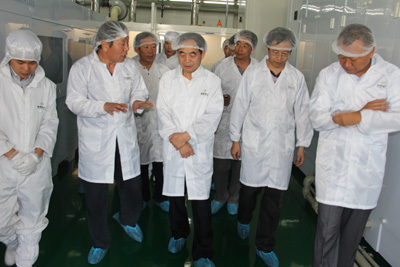 在潔凈明亮的現代化車間內,駱玉林副省長一行參觀了聚能電力一期50MW太陽能電池片生產流水線作業以及首批試生產太陽能電池片,仔細詢問和了解了工藝流程、設備性能、人員配備和產品技術指標等情況,并聽取了青海水電集團董事長唐增科、總經理王海青以及聚能電力負責同志關于項目建設、存在主要問題等情況的匯報。駱副省長對我公司項目建設及生產情況給予了充分肯定。他強調,由于受國際太陽能大環境影響,我國太陽能及光伏產業發展遇到了前所未有的困難,希望聚能電力及其上級單位緊緊把握我省新能源產業發展的有利時機,立足本身、迎難而上,積極尋求市場,加大技術革新力度,不斷促進企業健康穩定發展。 (文:陳宏  圖:馬東海
