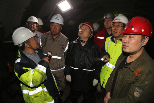 410,省水利廳副廳長張偉在青海水電集團總經理王海青及省引大濟湟建設管理局負責同志陪同下,到調水總干渠工程一線督導建設工作,并與監理、施工方代表進行座談,就力爭實現2014年輸水隧洞貫通目標提出了指導意見和具體要求。(文、圖:延青)