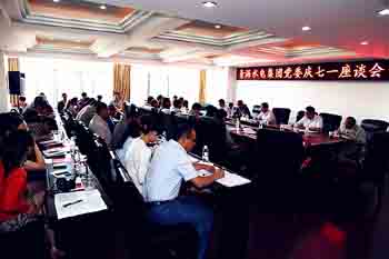 71下午,青海水電集團黨委召開七一座談會。集團黨委書記、董事長唐增科,總經理王海青、副總經理李傳強,各成員企業領導班子成員、黨群部門負責人、黨員代表和本部機關黨員共50多人參加會議會議由集團黨委副書記李建民主持。