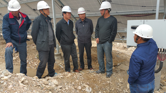 當(dāng)天上午,唐增科一行來(lái)到位于德令哈市區(qū)西北約20公里的聚能電力一期40光瓦并網(wǎng)光伏電站建設(shè)現(xiàn)場(chǎng),察看了工程總體布置和當(dāng)前形象進(jìn)度,與建設(shè)、施工、監(jiān)理單位干部職工親切交流,了解參建隊(duì)伍配備、土建和安裝作業(yè)進(jìn)展、組件和機(jī)電設(shè)備到貨、驗(yàn)收和并網(wǎng)準(zhǔn)備工作,以及外圍協(xié)調(diào)和后勤保障等方面的情況,并分別向他們贈(zèng)送了慰問(wèn)金,表達(dá)了集團(tuán)黨委、經(jīng)營(yíng)班子和工會(huì)的親切問(wèn)候。隨后,在工地召開(kāi)座談會(huì),聽(tīng)取了項(xiàng)目法人單位和參建各方負(fù)責(zé)同志的匯報(bào)。唐增科對(duì)于聚能電力公司周密安排、精心組織,參建各方精誠(chéng)團(tuán)結(jié)、密切配合,較快完成工程的絕大部分實(shí)體任務(wù)予以充分肯定,并著重針對(duì)存在的問(wèn)題,就抓好后續(xù)重點(diǎn)環(huán)節(jié)的工作提出了要求。他強(qiáng)調(diào),該項(xiàng)目對(duì)于聚能電力公司和集團(tuán)公司意義重大,其能否在630日前成功并網(wǎng),事關(guān)企業(yè)形象、資源配置及持續(xù)發(fā)展大計(jì)。各參建單位務(wù)必高度重視,拿出沖刺攻堅(jiān)的精氣神,進(jìn)一步加快進(jìn)度,嚴(yán)控質(zhì)量,嚴(yán)管安全文明施工,確保項(xiàng)目?jī)?yōu)質(zhì)高效地建成,試運(yùn)行萬(wàn)無(wú)一失,給集團(tuán)公司交上一份滿意的答卷。聚能電力公司要圍繞實(shí)現(xiàn)6·30發(fā)電目標(biāo),就全面做好驗(yàn)收、并網(wǎng)準(zhǔn)備工作進(jìn)行明確分工,詳細(xì)分解計(jì)劃和措施,逐級(jí)把責(zé)任落實(shí)到人,留足應(yīng)急余地,規(guī)定辦理時(shí)限,并加強(qiáng)與電網(wǎng)企業(yè)及政府部門的溝通協(xié)調(diào),確保各項(xiàng)任務(wù)按期圓滿完成。
